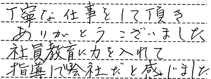 丁寧な仕事をして頂きありがとうございました 社員教育に力を入れて指導している会社だと感じました